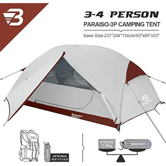 Camping Tent for 3 Person, Two Doors Double Layer