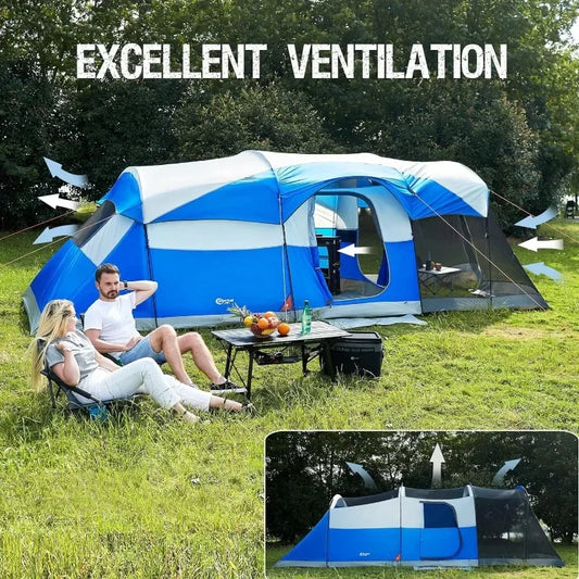 8 Person Family Camping Tent with Screen Porch